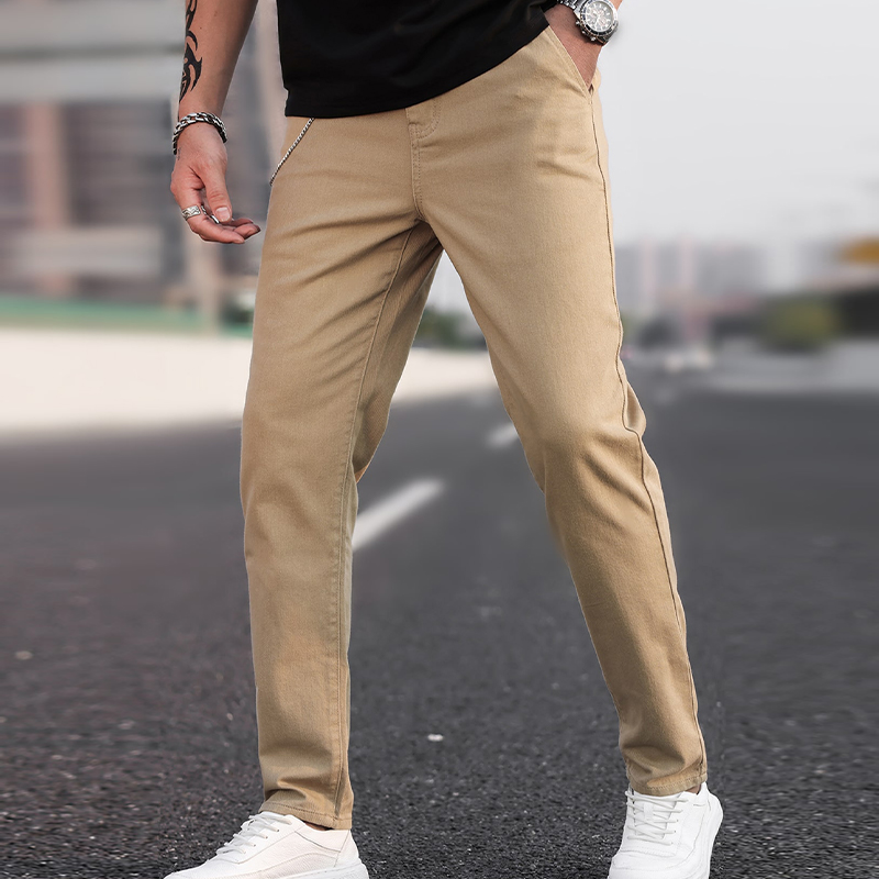 Men Chain Slant Pocket Slim Straight Jeans